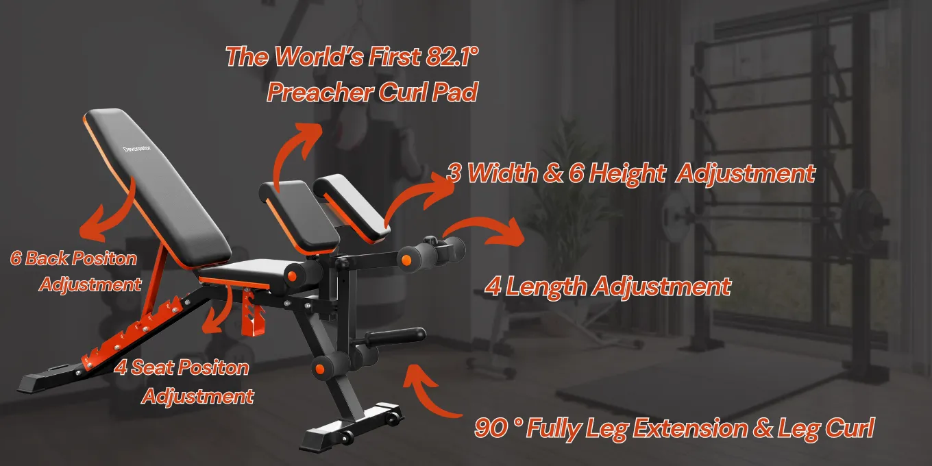 DAV Adjustable Preacher Curl Weight Bench With Leg Extension
